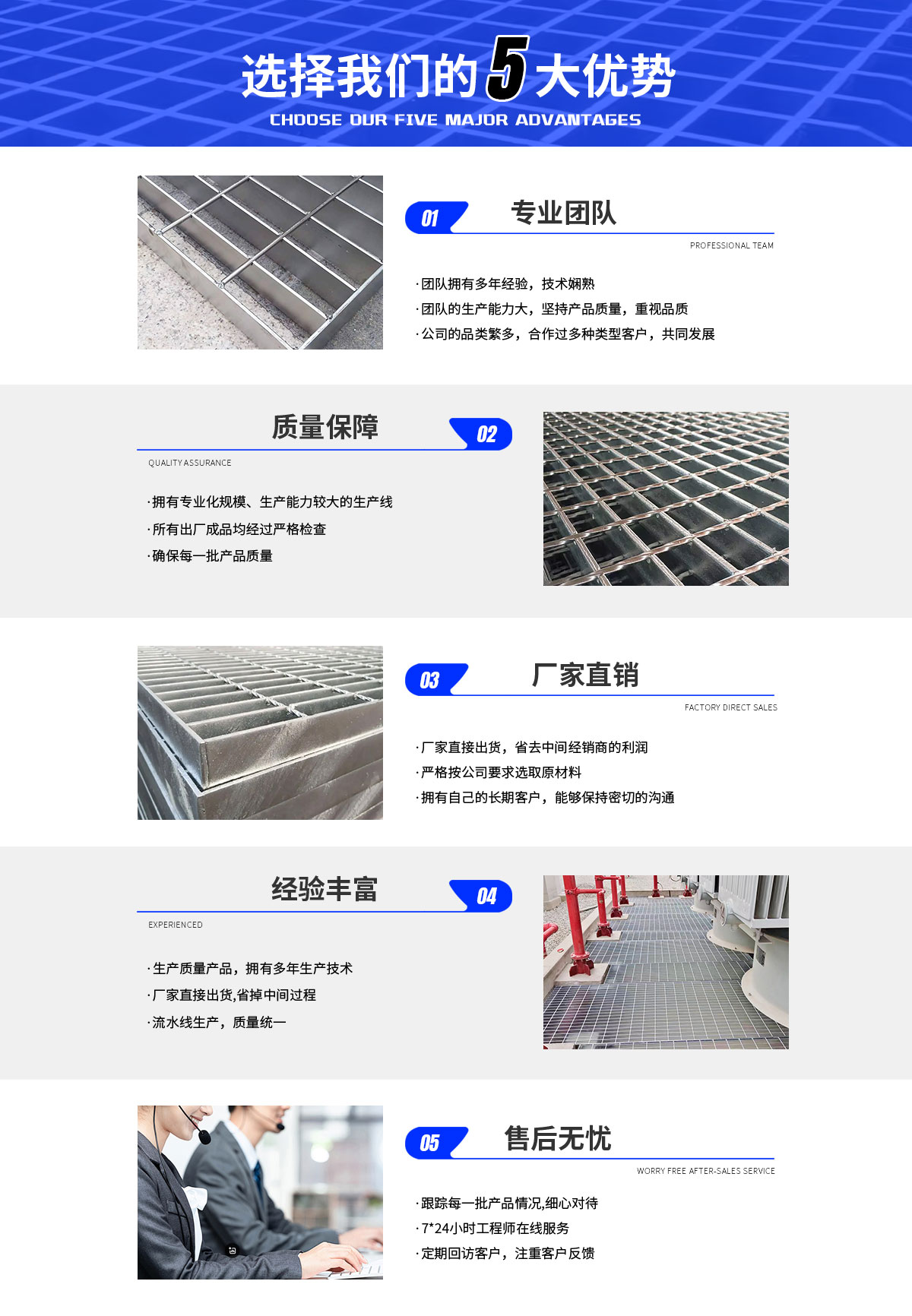 本廠生產(chǎn)船舶鋼格柵板、電廠鋼格柵板、光伏運維通道踏板、鍋爐房鋼格柵板、化工鋼格柵板、化油池平臺鋼格板、烤漆房鋼格柵板、碼頭鋼格柵板、平臺鋼格柵板、橋墩鋼格柵板、停車場鋼格柵板、脫硫塔鋼格柵板、污水廠鋼格柵板、洗煤廠鋼格柵板、箱變平臺鋼格板、油田鋼格柵板、玻璃鋼格柵板、不銹鋼鋼格柵板、防滑鋼格柵板、復合鋼格柵板、鋼格柵板、鋼梯踏步板、熱鍍鋅鋼格柵板、水溝蓋板、壓鎖鋼格柵板、異形鋼格柵板、重型鋼格柵板、球形立柱等。采用全自動大型壓焊生產(chǎn)線,美觀牢固。本廠始終堅持"質(zhì)量好,用戶至上"的服務宗旨,贏得廣大用戶的贊譽, 產(chǎn)品遠銷大江南北